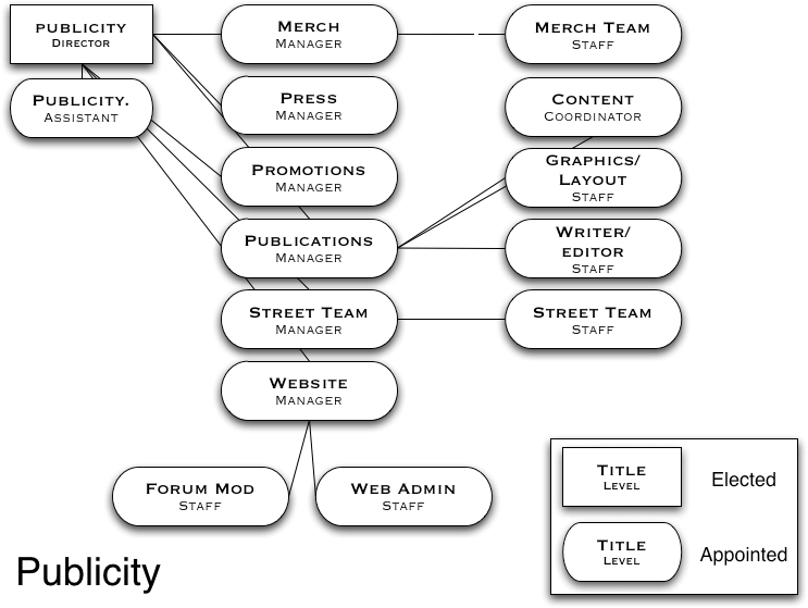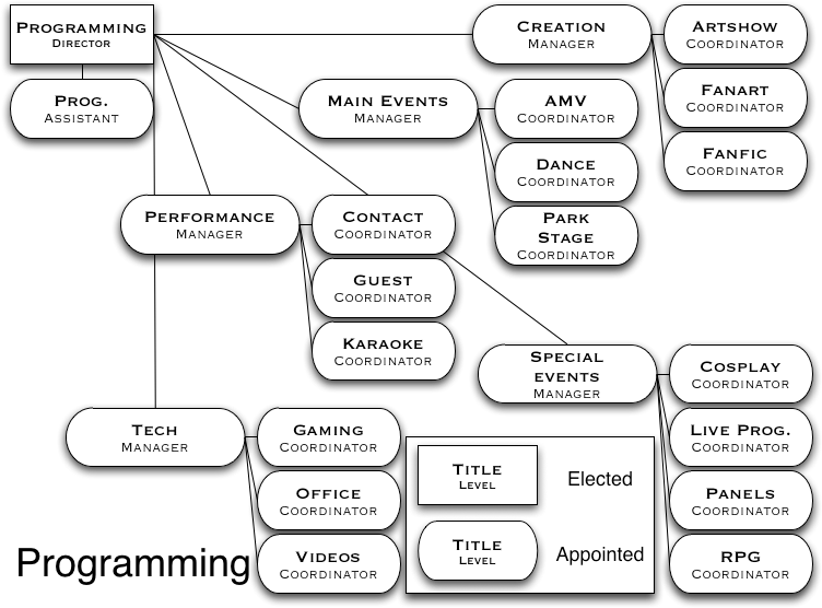 The Altonimbus Entertainment organizational charts show the structure of all members of the Altonimbus board and of Kumoricon staff. The departments charts are for the 2007 year and will be updated for 2008.