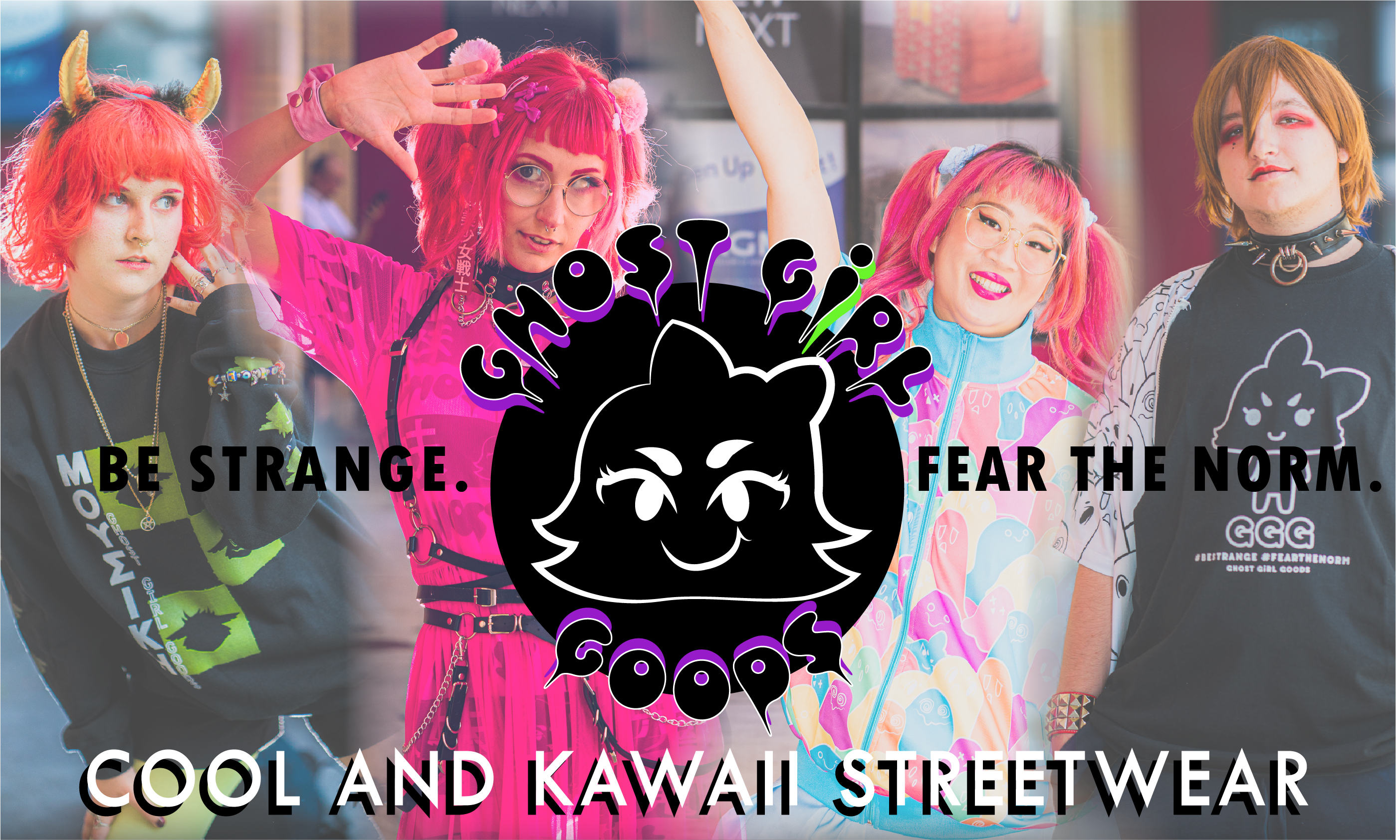GHOST GiRL GOODS is a cool and kawaii Harajuku fashion-inspired clothing brand from Toronto, Canada. They work closely with the following Japanese brands: 6%DOKIDOKI, NUEZZZ, and HYPER CORE and have done various collaborations with them. The brand slogan "BE STRANGE. FEAR THE NORM." encourages others to fear blending in and let their true colours shine, no matter how bright they are! A collection of fun characters resides in GHOST GiRL HQ, which includes the 5 monsters who you may even see on various products.